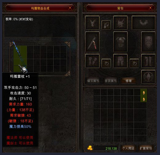 注:请务必根据合成的规则,不要多放其他的东西。比如多放一块宝石,那样的话,系统将默认为合成玛雅物品而不是合+10装备,此时的成功率可能会变成100%,但只是合成玛雅物品,绝不是+10装备合成的成功率。